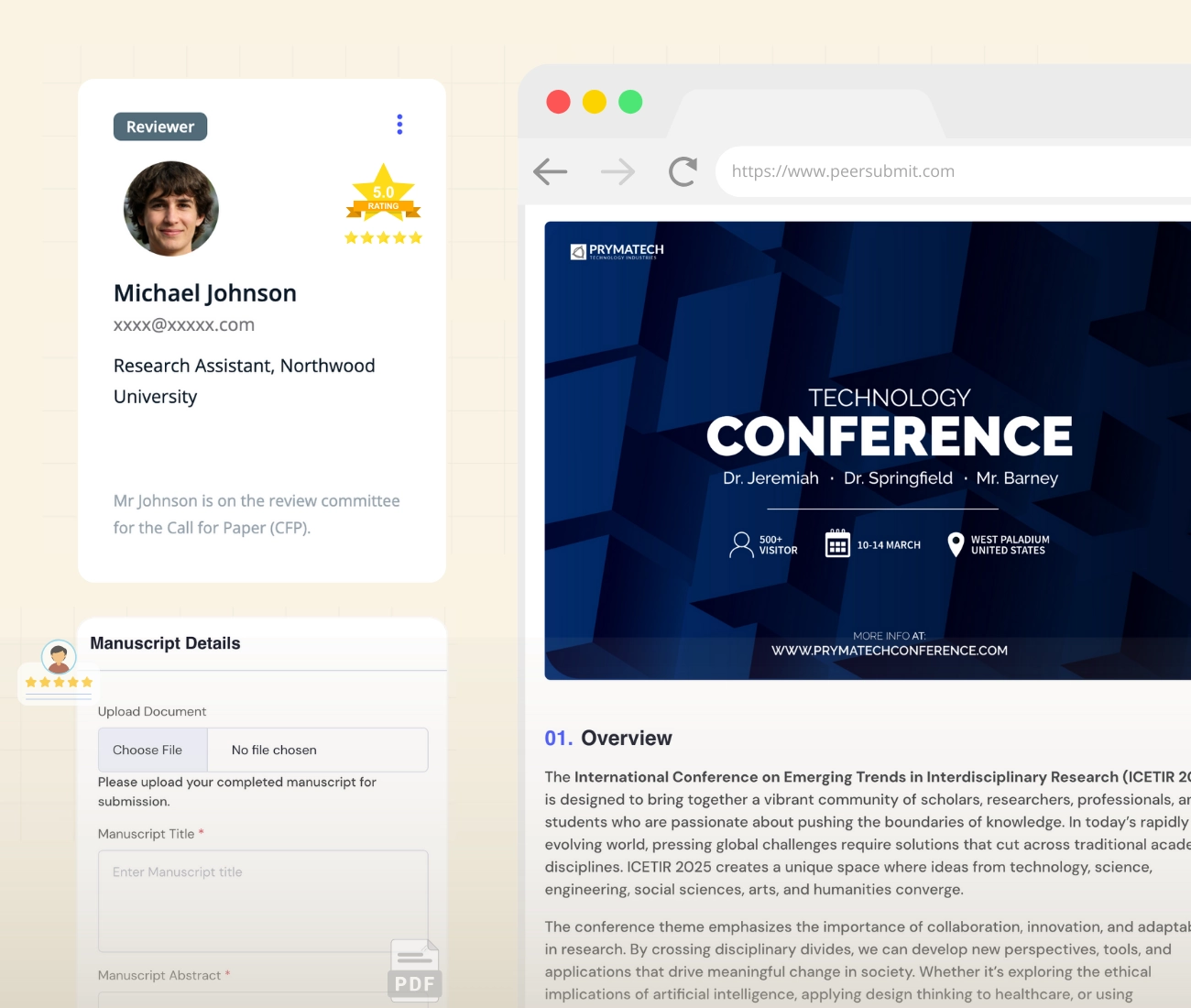 PeerSubmit streamlines paper submission and peer review through AI automation, enabling academies and journals to save time, enhance collaboration, and focus on advancing impactful research.